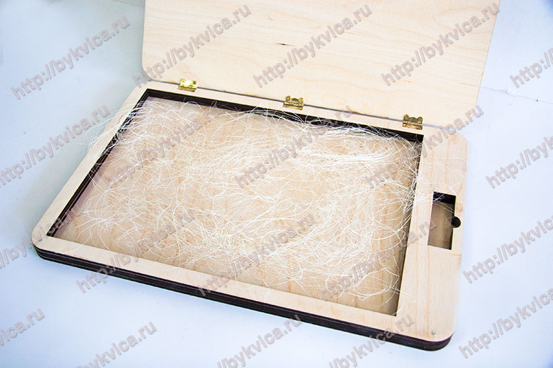 Коробка из дерева для фотографий и флешки изготовлена из фанеры толщиной 6 мм. Коробка рассчитана для фото размером А4. На крышке коробки находится гравировка. По Вашему желанию может быть нанесена любая гравировка. Так же внутри коробки находится сизаль.