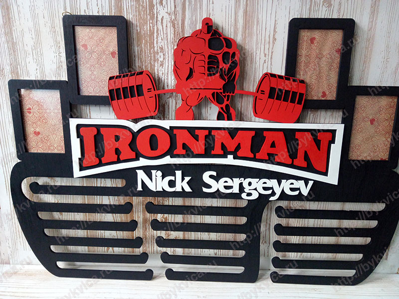 Будьте первым, кто оставил отзыв на “Медальница из дерева с фото рамками «IronMan»/ Медальница для бодибилдера (ves30)”