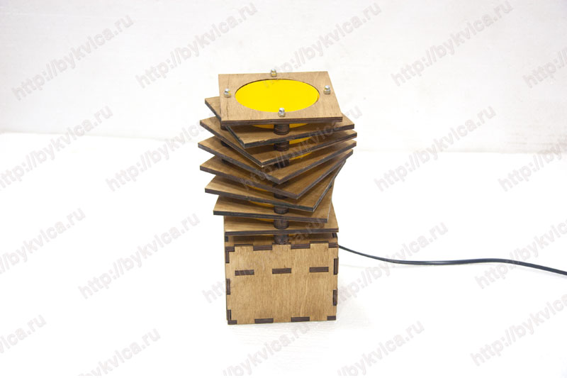 Дизайнерский светильник для интерьера из дерева «Спираль» изготовлен из фанеры толщиной 4 и 6 мм. Светильник работает от сети 220В. Лампа светодиодная в комплекте. Светильник является дизайнерской разработкой компании «Буквица». По Вашему желанию светильник может быть покрашен в любой цвет. Так же обращаем Ваше внимание, что Вы можете заказать данный светильник гораздо большей высоты, так как он является наборным, т.е элементы светильника добавляются. Светильник назван «Спираль» так как его элементы закручены по спирали.