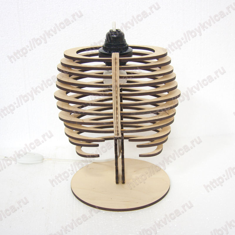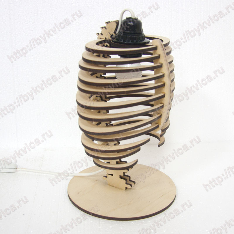 Дизайнерский светильник из дерева-изготовлен из фанеры толщиной 6 мм. Светильник имеет на первый взгляд странную форму. Но если присмотреться четко видится очертания скелета. Светильник первый раз сделали по индивидуальному заказу нашего постоянного клиента. Он пришелся нам по душе и мы решили разместить его в интернет магазине и дать Вам возможность купить дизайнерский светильник. Светильник имеет размеры 31*24 см. Работает от сети 220 В. Лампа светодиодная теплого свечения. При включенном лампе отбрасывает на стену причудливые формы и узоры. Купить светильник дизайнерский Вы можете нажав на кнопку «Добавить в корзину» или написав нам сообщение через форму обратной связи.