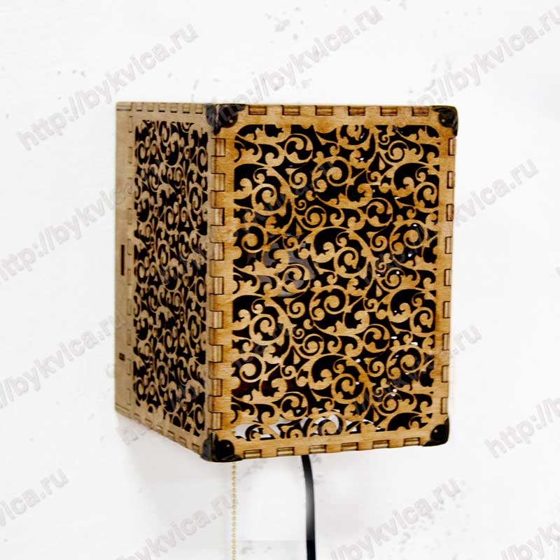 Бра настенные с узорами изготовлены из фанеры 6 мм. Особенностью бра настенных является их дизайн и тот узор, который они оставляют при свечение. Бра работают от сети 220 В. В комплекте с бра идут крепления на стену для удобства монтирования. Бра настенные поставляются с цепочкой для включения. По Вашему желанию можно изменить включатель на другой, к примеру если бра будет включаться общим включателем. Бра настенные недорого Вы можете купить, нажав на кнопку «Добавить в корзину».