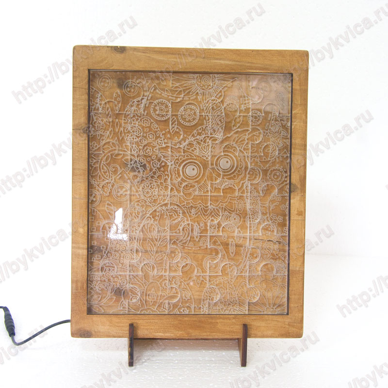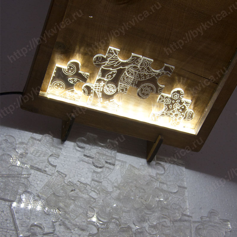 Светодиодный светильник-это уникальная разработка компании «Буквица». Особенностью светильника светодиодного является его конструкция, а именно возможность пользоваться светильником как головоломкой для собирания пазла. При чем пазл из прозрачного акрила и собирать его намного проще когда светильник светится. Светильник изготовлен из дерева и акрила. На акрила лазером нанесен рисунок, который и придает светильнику объем при свечении. Размер светильника светодиодного 28*35 см. Светильник работает от сети 220 В через блок питания, который идет в комплекте со светильником светодиодный. По Вашему желанию можно нанести другой рисунок на поверхность пазла. Для того чтобы купить светильник светодиодный, нажмите на кнопку «Добавить в корзину» и выберите способ оплаты.